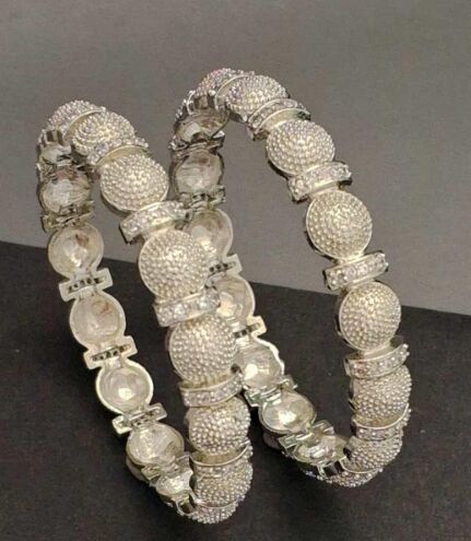 Zevarly White AD/CZ Bangles, made of alloy with silver plating, offer timeless elegance. The set includes two pieces, perfect for any occasion. Wipe with a clean cloth for care.