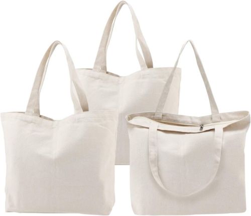 Plain Zipper Canvas Bag For Shopping Use
