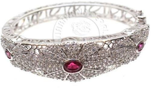 We are offering zircon bracelet. Bracelet studded with zircon stones. Metal : mixture of copper and silver gold plated type : bracelet shape : ellipse color : red size : horizontal: 2.5, vertical: 2 stones : zircon