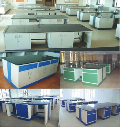 This Lab can have the following arrangements :  Specimen Display Cabinets.  Wall Cupboards at various points to store materials over head on the walls.  Floor Cupboards to store samples safely with lock  Revolving Lab Stools