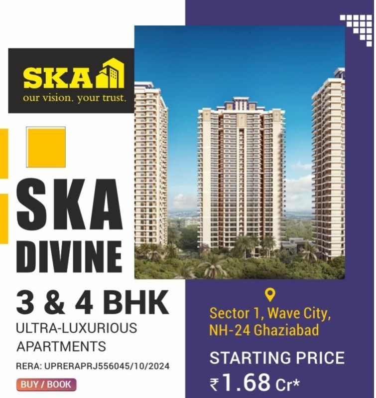 SKA Divine , Where Luxury Meets Convenience! β Ultra-Luxurious 3 & 4 BHK ApartmentsΒ Β β Prime Location: Sector 1, Wave City, NH-24 Ghaziabad. β World-Class Amenities for an unparalleled living experienceΒ Β β Starting Price: βΉ1.68 Cr onwards usΒ Β +91-9582-275-275