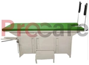 Overall approx. Size : L 1820 mm x W 560 mm x H 815 mm. Frame : Press bend CRCA sheet Top with backrest adjustable on ratchet. Perinial "U" cut at foot end, CRCA tubular legs. Pre-treated & Epoxy powder coated....
