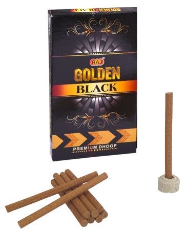 GOLDEN BLACK DHOOP A deep, resinous fragrance with smoky undertones and a touch of warmth. This mystical blend grounds your space with bold presence and sacred calm.Dark, intense, and captivating. A luxurious fragrance that fills your surroundings with rich smoke and golden warmthideal for rituals, reflection, or setting a powerful mood. A premium dhoop rooted in heritage, crafted to evoke the richness of sacred woods and resins. Burn to bring harmony, protection, and a touch of opulence to your rituals.