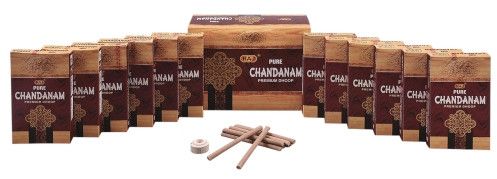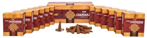 PURE CHANDANAM CONES Pure Chandanam our #1 bestseller, delivers a rich, authentic sandalwood aroma like no other.Formulated with premium in-house perfumes, it works best on high-quality charcoal sticks.Renowned for its long-lasting fragrance and calming effect, it elevates every space. Unmatched in performance, purity, and price its the fragrance everyone keeps coming back to. Chandanam or Sandalwood incense calms the mind, purifies the space, and deepens focus. Its rich, sacred aroma is perfect for meditation, prayer, and everyday peace. Packing Form: Box Contents (Net Weight): 25g per box M.R.P.: 15.00 per box Unit Packing: 12 Boxes per Dozen Carton Packing: 60 Dozens per Carton (i.e., 720 Boxes) Total Quantity per Carton: 720 Boxes Total M.R.P. per Carton: 10, 800.00
