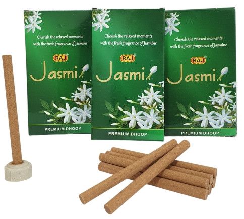 Premium 4-Inch Dhoop Jasmine Exotic. Sweet. Uplifting. Infuse your space with the rich, intoxicating aroma of blooming jasmine. Our Jasmine Premium Dhoop is hand-rolled with natural ingredients to deliver a deep floral fragrance that awakens the senses and lifts the spirit. Perfect for evening relaxation, creative rituals, or creating an inviting, enchanting atmosphere. Exotic and intensely floral, Jasmine captivates the senses with its intoxicating perfume. Known to uplift the mood and spark inspiration, this scent brings an air of celebration and enchantment to any setting. Let jasmines timeless charm bring joy, clarity, and a touch of magic to your daily rituals. Fragrance Profile: Floral Rich Sensual Mood: Uplifting, romantic, inspiring Ideal For: Evening pooja, creativity, emotional release, calming the mind Charcoal-free Long-lasting Naturally fragrant Handcrafted with care