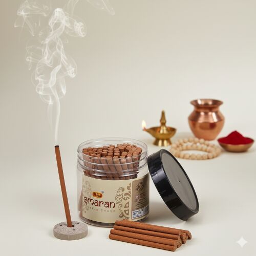 Raj Dhoop Shorts Divine Fragrance in Every Stick Elevate your everyday rituals with Raj Dhoop Shorts, a premium incense product crafted to bring peace, purity, and a soothing aroma to your space. Each dhoop stick is infused with a carefully balanced blend of natural herbs, resins, and essential oils, offering a long-lasting fragrance that calms the senses and uplifts the spirit. Perfect for meditation, prayer, yoga, or simply refreshing your home, Raj Dhoop Shorts burn cleanly and evenly, filling your surroundings with a warm, earthy scent rooted in ancient Indian tradition. Compact yet powerful, these short-format dhoop sticks are ideal for quick moments of mindfulness or deeper spiritual practices.