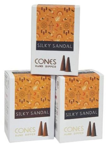 SANDALWOOD - CONES Crafted in the spirit of ancient rituals, these cones release the timeless fragrance of real sandalwoodearthy, sacred, and deeply grounding. Smooth and subtly sweet, the scent of sandalwood evokes quiet sophistication. Light a cone to invite elegance and serenity into any space.A sacred scent revered for centuries. This luxurious incense delivers the deep, balsamic warmth of sandalwoodideal for spiritual practices, yoga, or simple stillness. Best Times to Use Sandal Cones * During meditation or yoga * While reading or relaxing * For stress relief and calming atmosphere * As a natural room fragrance * In spiritual rituals or cleansing practices