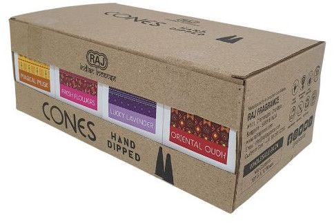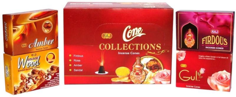 CONE COLLECTION RED A series exclusively for cones with a wonderfull combination of Fragrances: • Amber • Firdous • Goldern Wood and • Gul. All fragrances are blended with in-house perfumes to create soothing atmosphere. Available in 4 Fragrances x 3 pieces each. These charcoal free incense cones are handcrafted, and of the highest quality, these are perfect for enhancing the atmosphere of your home or being included in use for your favorite spells and rituals Product Form: Box Net Weight: 25g per box M.R.P.: 15.00 per box Unit Packing: 12 Boxes per Dozen Carton Packing: 50 Dozens per Carton (i.e., 600 Boxes) Total Quantity per Carton: 600 Boxes Total M.R.P. per Carton: 9, 000.00
