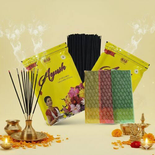 "AYUSH 3-IN-1 – Sandalwood Floral Musk Fancy AYUSH 3-IN-1 blends three unique fragrances in one pack, offering a versatile experience for every mood. The classic warmth of sandalwood grounds and calms, while floral musk adds a soft, romantic touch. The fancy fragrance introduces a contemporary, lively twist with subtle sweetness and spice, perfect for refreshing any space. Sandalwood: Earthy and soothing, ideal for meditation and relaxation Floral Musk: Delicate and alluring, adds warmth and elegance Fancy: Playful and fresh, with a modern, vibrant character Perfect for daily use, spiritual rituals, or simply uplifting your environment." Fragrances Included • Sandalwood – warm, calming, traditional A timeless classic known for its rich, woody aroma. This fragrance creates a peaceful ambience, perfect for meditation, prayer, or unwinding after a long day. Its smooth, earthy notes bring a sense of grounding and spiritual clarity. • Floral Musk – sweet, smooth, refreshing A beautifully balanced blend of delicate floral notes wrapped in soft musk. It offers a gentle sweetness without being overpowering, making your space feel fresh, soothing, and pleasantly uplifting. Ideal for daily use and relaxation. • Fancy – unique blend with a modern twist A contemporary fragrance crafted with a mix of vibrant, aromatic ingredients. It’s lively, slightly exotic, and leaves a long-lasting impression. Perfect for those who enjoy a stylish, youthful scent that stands out from traditional fragrances.