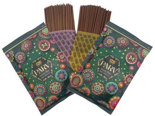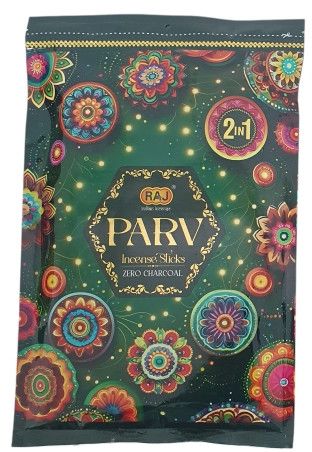 PARV 2IN1 NEW VALUE PACK LAUNCH! " !" Introducing our new PARV 2-in-1 Incense Sticks specially designed for customers who seek premium fragrance at a pocket-friendly price. Ideal for daily use, pooja, meditation, and creating a divine ambiance. What is "Parv"? Parv () in Hindi means Festival or Sacred Occasion. With RAJ PARV incense sticks, we bring the fragrance of celebration into your everyday life. Why Choose RAJ Parv? 2 Fragrances in One Pack Calming Sandalwood + Rich uplifting Fancy aroma 100% Charcoal-Free Cleaner, healthier, and smokeless experience Long-Lasting Fragrance Creates a spiritual and fresh environment Perfect for All Occasions Daily prayers, meditation, festivals, or relaxation Economical Big Pack More value, less expense Product Information: Fragrance Combo: Sandalwood + Fancy (2-in-1) Net Contents: 360 grams M.R.P.: 150/- only Carton pack - 6.5 dozens Burn Time: 4045 minutes per stick