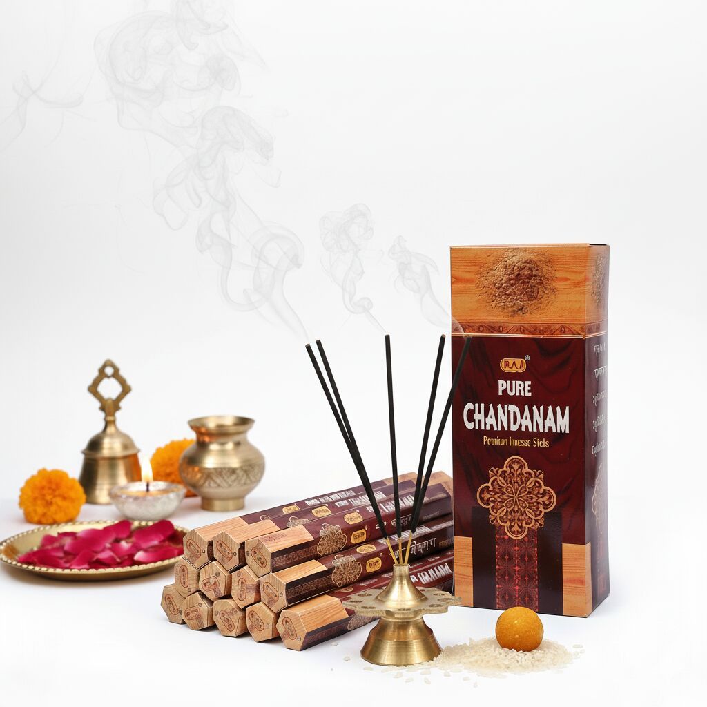 PURE CHANDANAM - Pure Chandanam carries the timeless essence of sacred sandalwood. Its rich, earthy aroma purifies the air, calms the mind, and creates a divine atmosphere for prayer and meditation.Experience the luxury of pure sandalwood with Pure Chandanam. A creamy, warm fragrance that evokes peace, purity, and sophistication—perfect for refined spaces and sacred rituals.