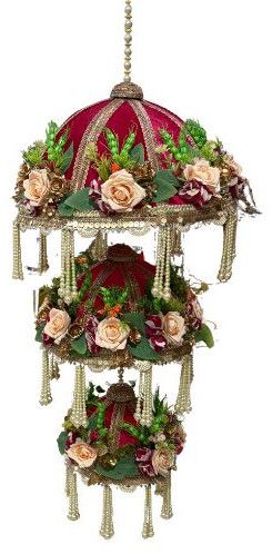 Bring timeless artistry and cultural grandeur into your space with this Handcrafted 3-Tier Hanging Umbrella, meticulously made from eco-friendly bamboo and draped in rich velvet fabric. Designed with intricate laces, pearls, and artificial flowers, this decor piece captures the essence of royal Indian craftsmanship.