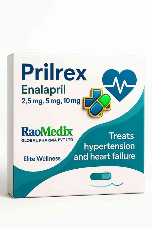 We offer Enalapril Tablets containing 2.5 mg of Enalapril, with the generic name Prilrex. Manufactured by RaoMedix Global Pharma Pvt Ltd, these allopathic tablets are stored best in a dry place. Our high-quality product is ideal for exporters, suppliers, and traders dealing with pharmaceuticals. Trust in our Enalapril Tablets for effective treatment, convenient dosage form, and reliable strength. Choose us for top-notch pharmaceutical products that meet your needs and exceed your expectations.