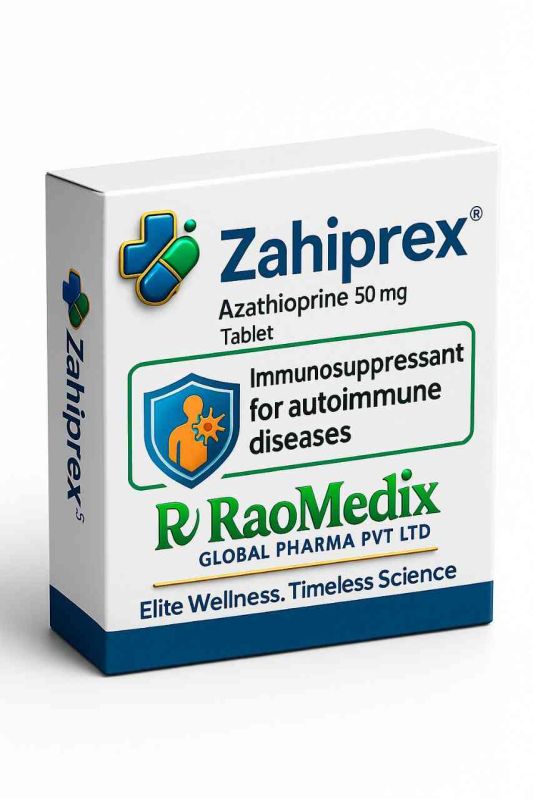 We are a leading exporter, supplier, and trader of 50mg Azathioprine Tablets, a powerful immunosuppressant for autoimmune diseases. Our Zahiprex tablets are manufactured in India by RaoMedix Global Pharma Pvt Ltd. Each tablet contains 50mg of Azathioprine, providing effective treatment. Trust in our high-quality product to manage autoimmune conditions with ease and reliability.
