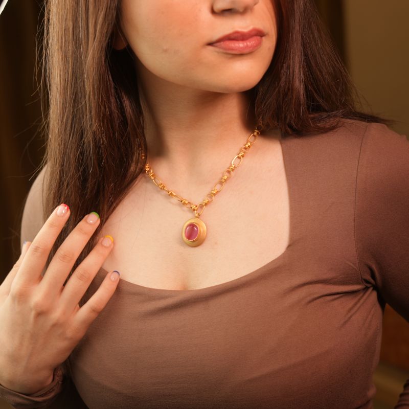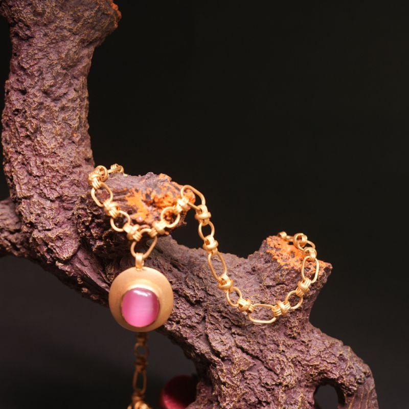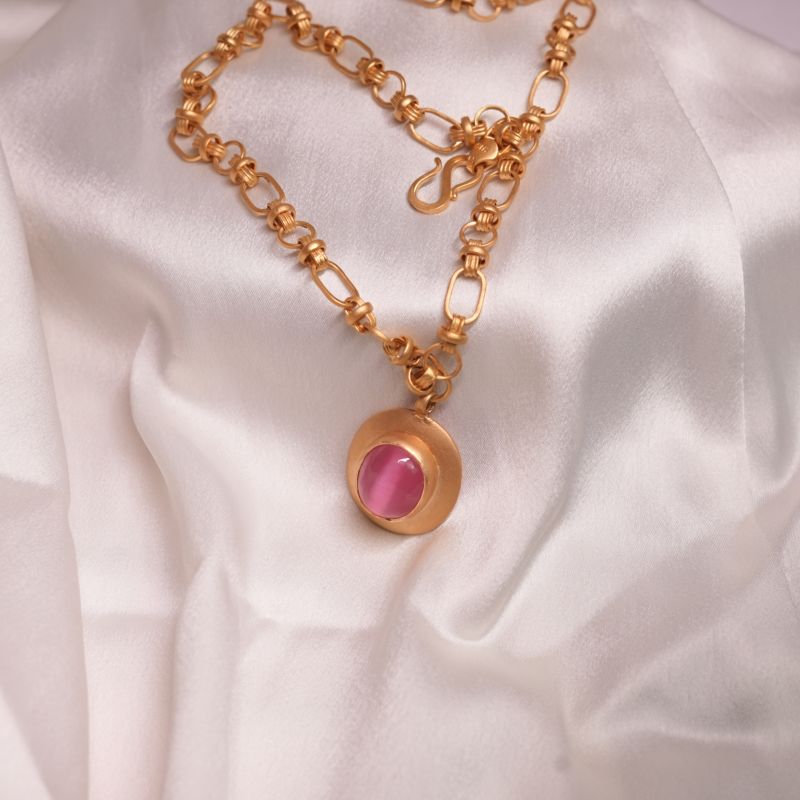 We offer a complete product range of Golden Necklace with Pink Stone Pendant