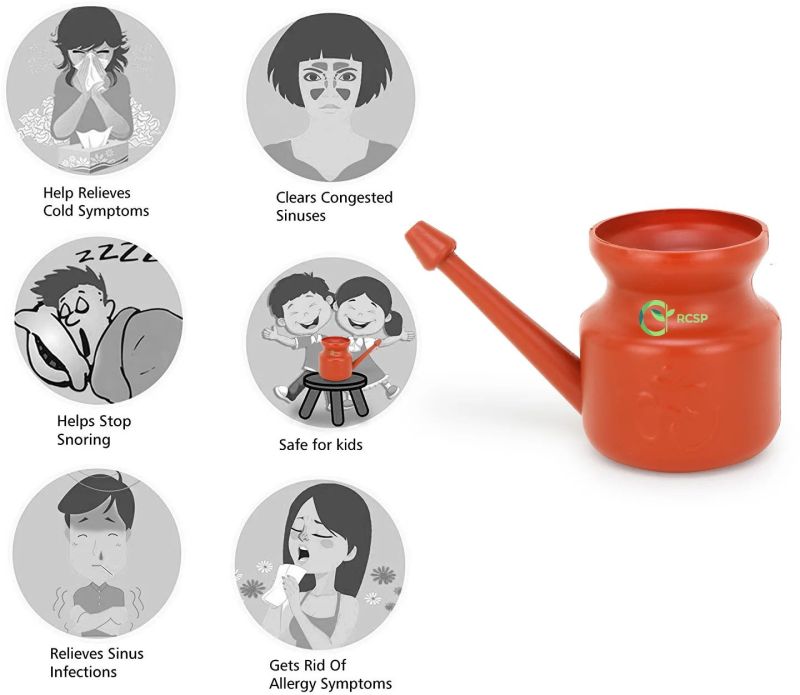 RCSP Round Jal Neti Pots and sinus rinses can be used for any nasal congestion, including from allergies, colds or sinus infections. They help with nasal irrigation and clear sinus drainage from the nose to make it easier to breathe, so you feel less stuffy. They also thin the mucus and allow the natural defenses in your nose to clear the nasal discharge, washing away possible allergens or other irritants.