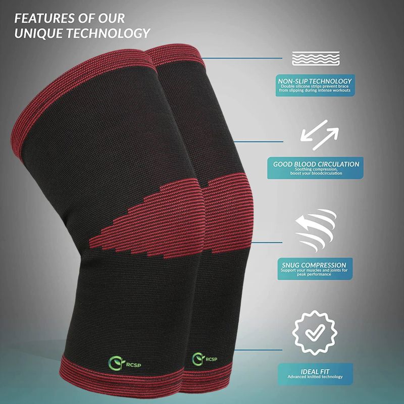 RCSP Knee cap Designer for Pain Relief, Sports Knee Compression Support, Exercise, Running, Cycling, Workout, gym Red L