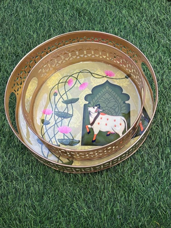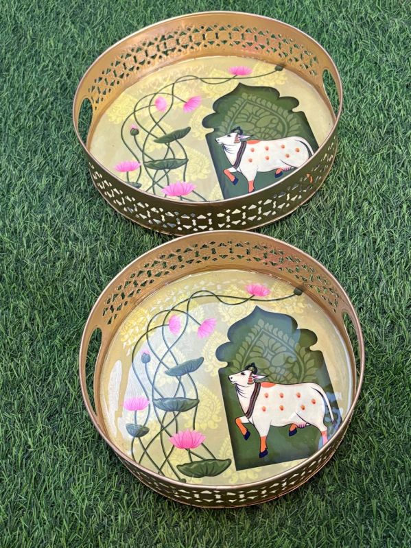 Embrace the charm of Indian heritage with the Alluring Iron Tray by Rehman Traders as a testament to the timeless art of Pichwai.