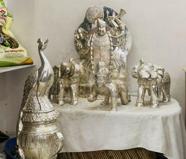 Established in the year 2022, Rekari Enterprises is among the leading and trustworthy organizations of this domain, engaged in Manufacturers, Wholesaler a wide range of products. Our offered assortment of products is comprises of Miniature Silver Paduka Pair, Ornate Peacock Roman Dial Table Clock, Ornate Throne Seated Ganesha Idol, Standing Venkateswara Temple Idol, Krishna Idol with Animal Companion Set, Embossed Silver Elephant Pair, Temple Arch Silver Jhoola Swing, Regal Silver Carved Accent Chair, Lion Pillar Antique Metal Jhoola with Cushioned Seat, Floral Arch Baby Cradle with Cushioned Base etc. Offered products are manufactured from supreme grade basic material by using modern tools and technology. All these products are made as per the industry approved parameters with the supervision of our skilled and experienced workforce. Our offered products are highly demanded across the market for their optimum quality.