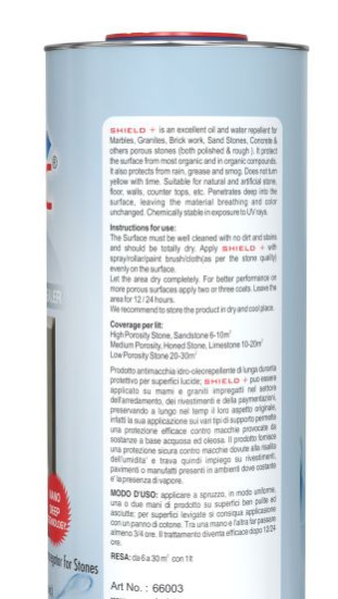 SHIELD is a Solvent based specialized anti-stain & water Repellent treatment for internal and external use. Suitable for both polished and honed natural stone. limestone, travertine, Slate, Marble and artificial conglomerate surfaces. Prevent stains such as oil, grease, dirt, food & Moisture. No change in the natural aspect of stone & does not form any film.