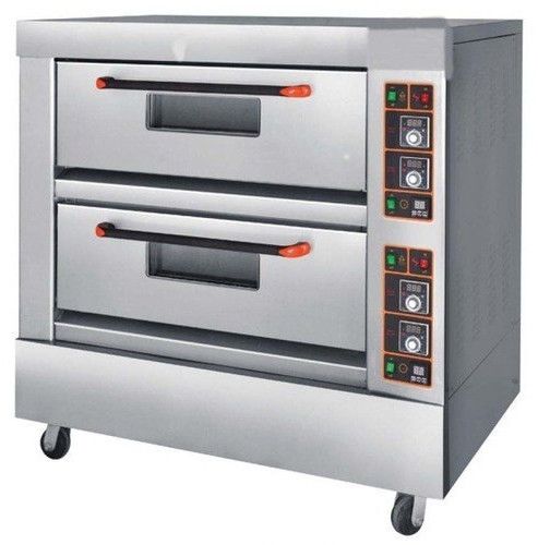 Used for baking Pizza, Bread/Bun, Biscuit/Cookies.Maximum temperature 300 degree.Comes with digital temperature meter.Also available in single deck & triple deck.