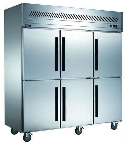Fully constructed in heavy duty gauge of stainless steel 304 sheet.Six nos. of puff insulated S.S. 304 doors with Integrated Handles.Adjustable stainless steel 304 shelves are provided.Independent on/off compressor switch.Digital temperature controller is provided in the unit.Equipped with castors, also available in adjustable leveling legs.Refrigerator can be fabricated in any custom size to suit as per requirement