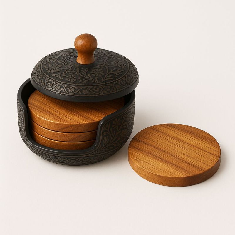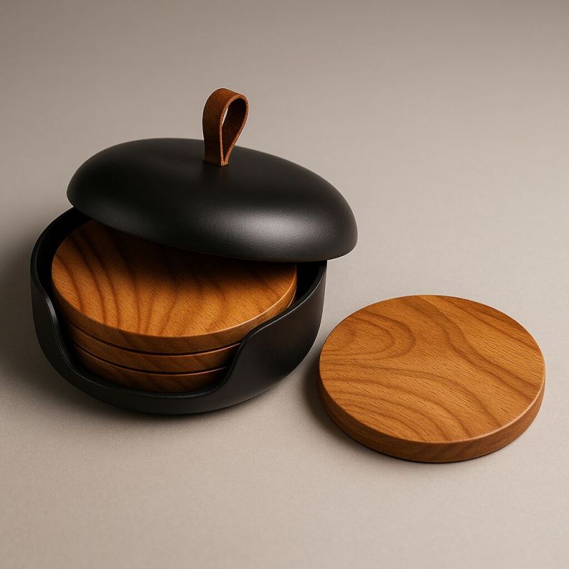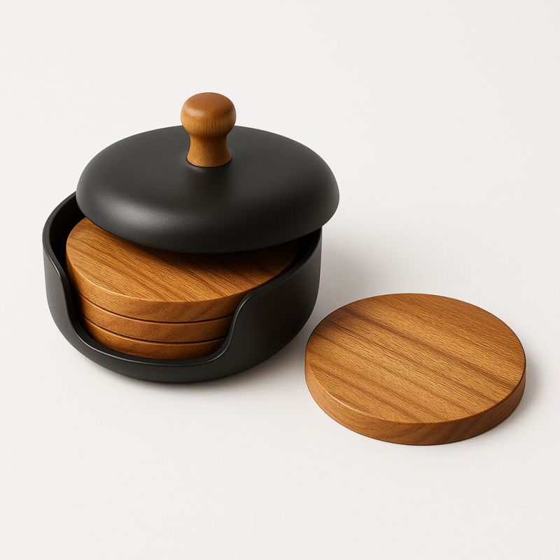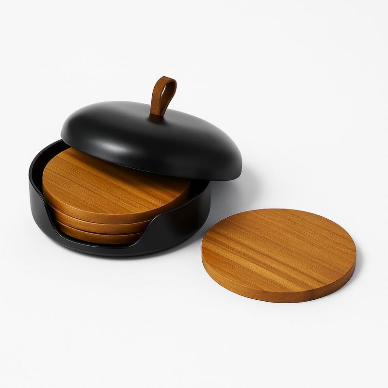 Leading Manufacturer, Supplier & Retailer of Elegant Acacia Wood Coaster Set with Stylish Black Storage Case Premium Drink for Home.