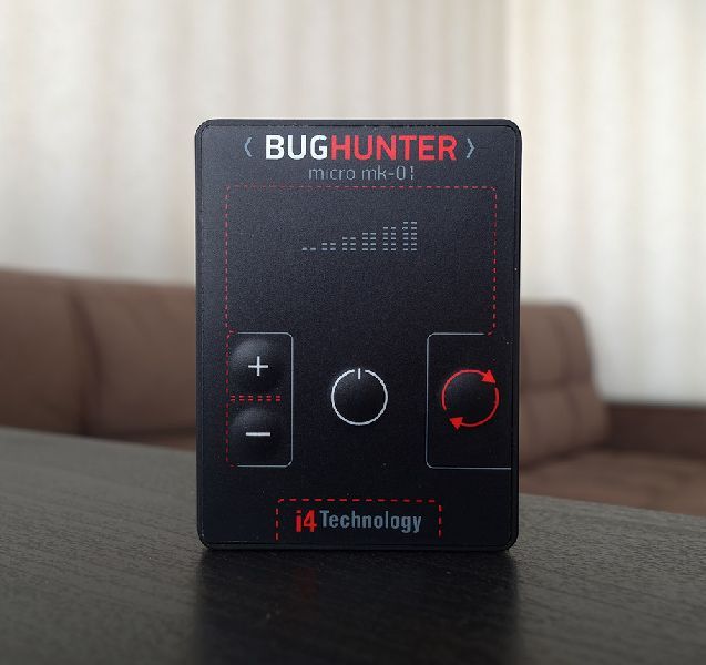 Detects all possible wireless bugs:GSM, CDMA phones, 3G, Bluetooth, Wi-Fi devices, wireless videocams, radio microphonesUltra slim: only5 mm!Dynamic Range - 70 dB;Detects bugs with very low signals and high power bugsTouch-sensitive intuitive two-button operationLightweight- only25 grDetailed English manual included BugHunter CR-01is a unique RF Detector. This device has extremely thin housing (only 5mm) and is lightweight. It looks like a credit card. This miniature detector hassuper high sensitivityand can be used to detect and locate in near field a wide variety of radio transmitters used for secret access to information. In spite of a tiny housing, the device combines characteristics of a professional device, namely:-Wide frequency range(from 10 to 3500 MHz) and- Unprecedentedhigh dynamic range (70 dB).Detector is very easy to use: it has intuitive touch panel operation with just two buttons operation.BugHunter CR-01 is intended for search and detection of wireless transmitting devices (bugs, wireless microphones, hidden wireless cameras, even cell phone jammers, WiFi and all other spy devices)in near field, as well as working cell phones with GSM, DAMPS, AMPS, DECTstandards.BugHunter CR-01uses a special filter that automatically blocks all background levels of signals and minimizes interference from GSM-towers which allows you to use a detector even in the close proximity to noise sources. GSM filter allows detecting bugs and "wiretapping devices" very effectively in any difficult environment. BugHunter will automaticly adjust to background levels of radio signals and will not react to extraneous noise, device will detect only a local spy bug.