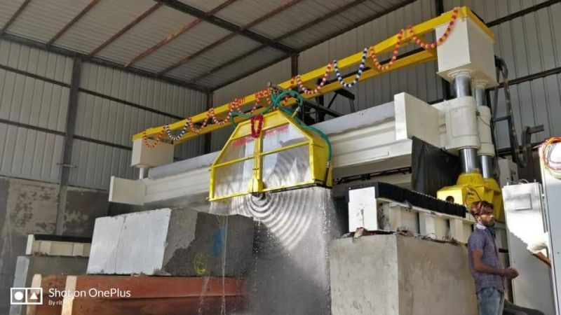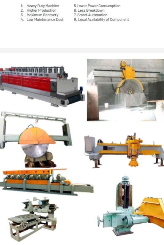 Different Diameters of blades working simultaneous as Multi-Blade Cutting. Both options are available screw rod lifting and Hydraulic lifting system. The cross beam for feeding show the table for block is not necessary. Heavy duty structure, logical control system. Ease of operation gives high production, finish slabs with flat surface no taper.