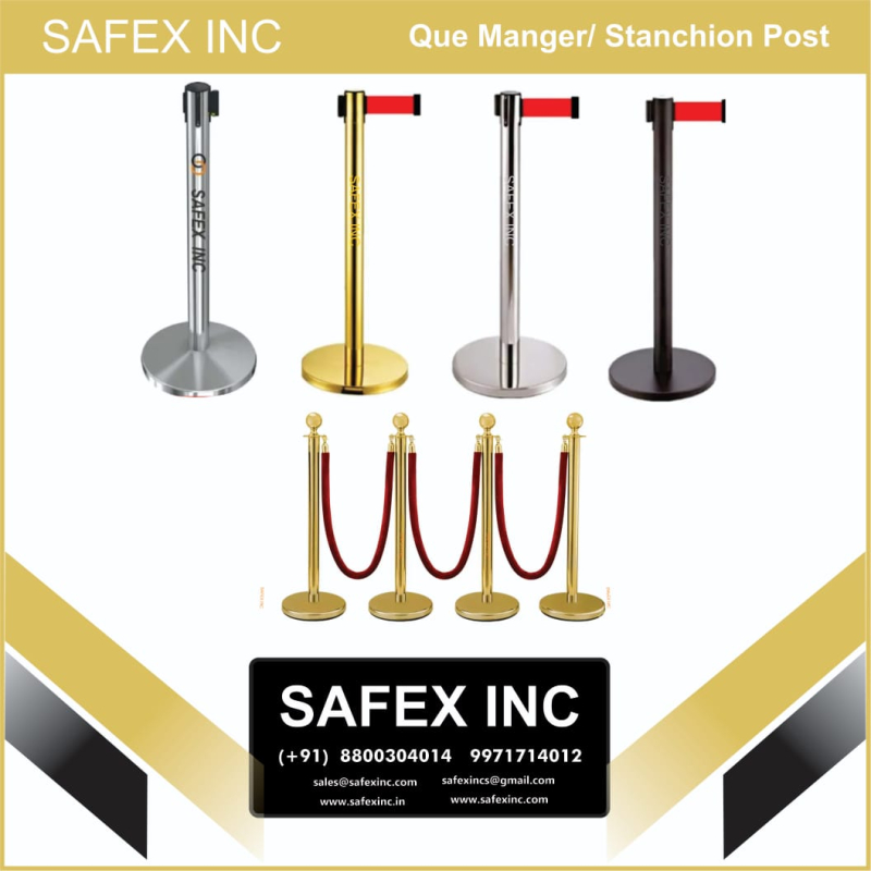Safex Inc is one of the most reputed manufacturer, Exporter, Importer of Que Manager, Stanchion Post, Pole Barricde, Barricade stand, Barricade pole, crowd control barricade, que stand, stanchion, retractable belt barriee