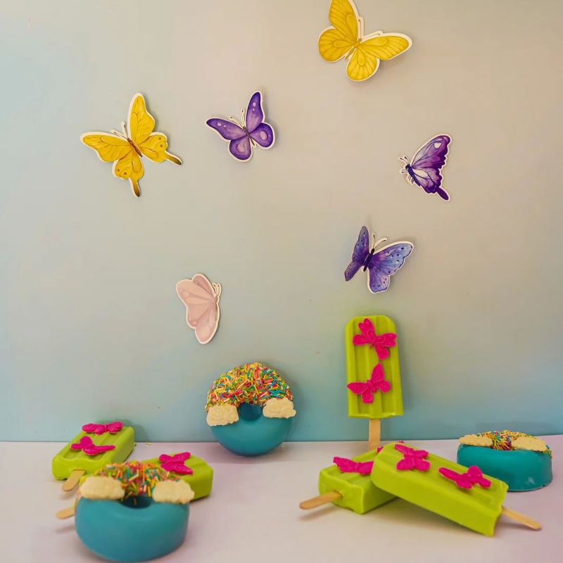 Our Rainbow Donut Soap and Butterfly Candies is a vibrant and playful addition to your bath collection. This handcrafted soap features a colorful rainbow design atop a delightful donut shape, accented with Butterfly candies Each layer offers a unique scent, creating a fun, sensory experience that transforms your bath into a joyful escape. Perfect for gifting or as a cheerful treat for yourself!