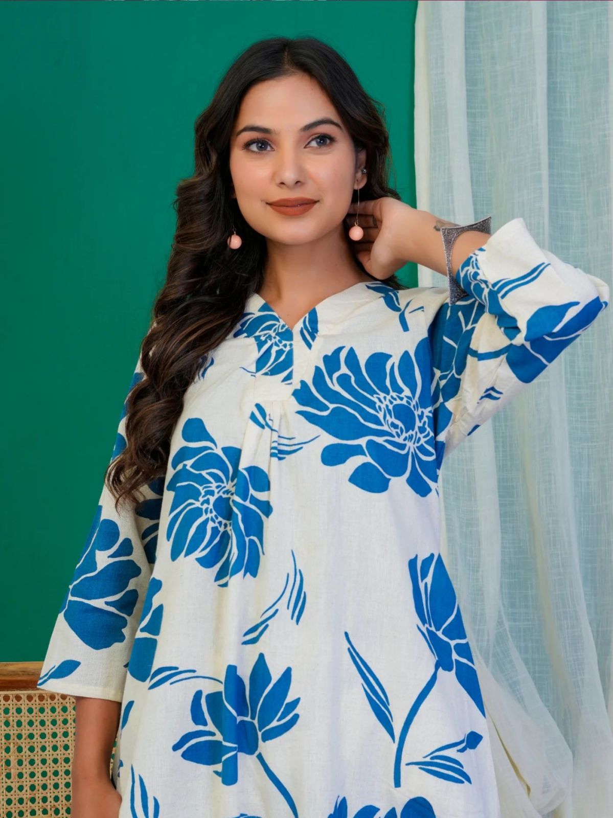 We are leaders in the market for providing best range of Ecru Wine Linen Cotton Short Kurti Pant Set, Turquoise Blue White Linen Cotton Short Kurti Pant Set, Black Brown Linen Cotton Short Kurti Pant Set, Navy Blue Beige Linen Cotton Short Kurti Pant Set and Black Taupe Rose Linen Cotton Short Kurti Pant Set