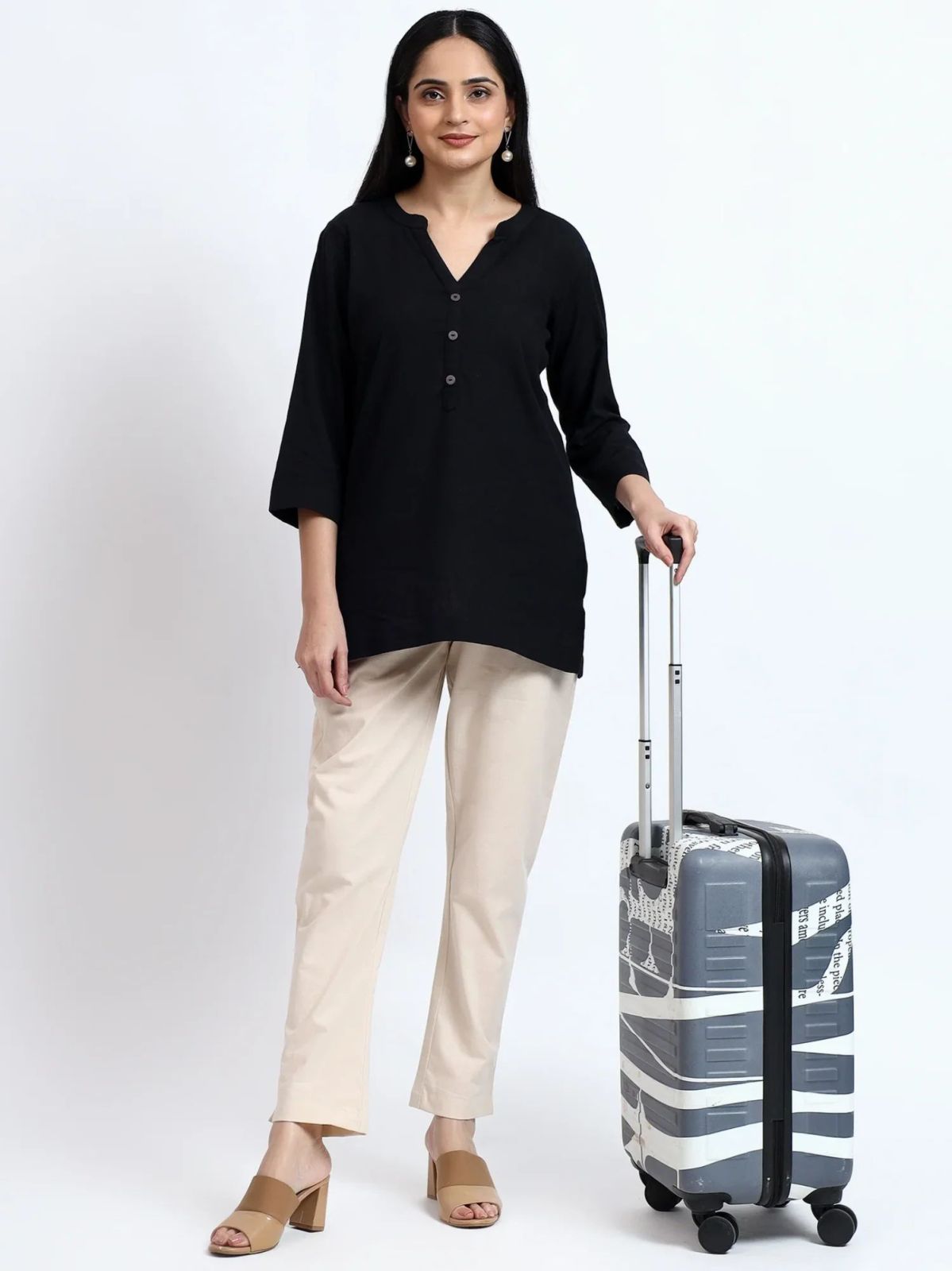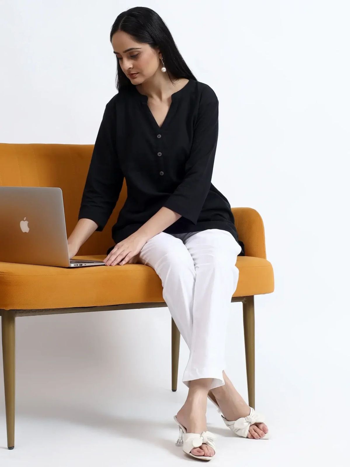 We offer a versatile Black White Linen Cotton Short Kurta Pant Set in sizes ranging from S to 4XL. This set features an airy linen short kurta with cotton pant, designed for a regular fit. The 3/4th sleeves and mandarin collar add a touch of formality, making it perfect for various occasions. The kurta is made of 20% linen and 80% cotton with 3 wooden buttons, while the pant is crafted from 100% cotton with a mid-rise fit. Ideal for exporters, suppliers, and traders looking for quality and style in their offerings.