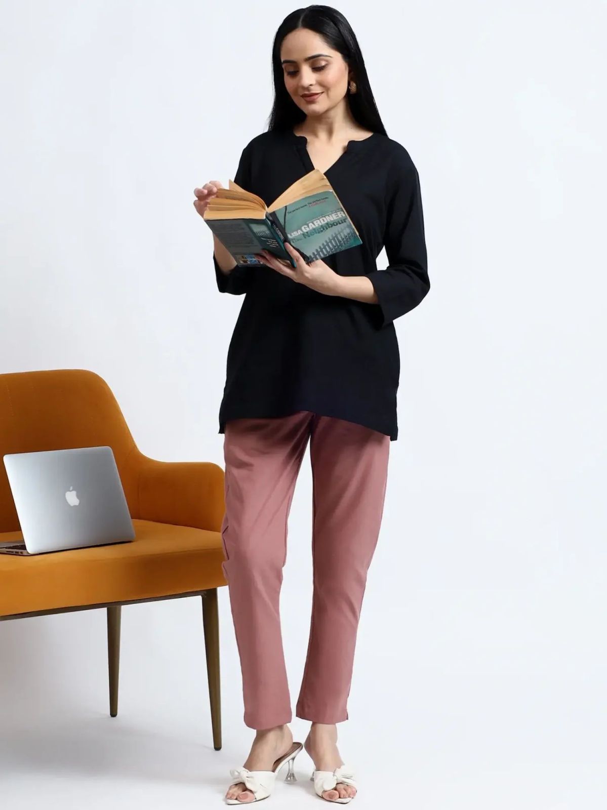 We provide a versatile Black Taupe Rose Linen Cotton Short Kurta Pant Set in sizes ranging from S to 4XL. This Kurta Pant Set features a regular fit with 3/4th sleeves, making it ideal for formal occasions. The Kurta is crafted from 20% Linen + 80% Cotton with a stylish Mandarin collar and 3 wooden buttons. The accompanying pant is made from 100% Cotton with a mid-rise fit. Perfect for exporters, suppliers, and traders looking for quality ethnic wear options.