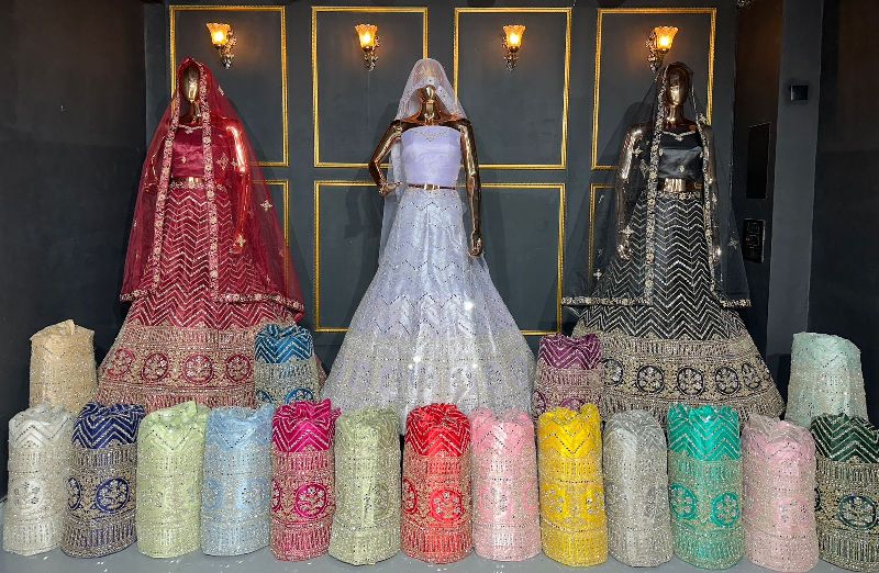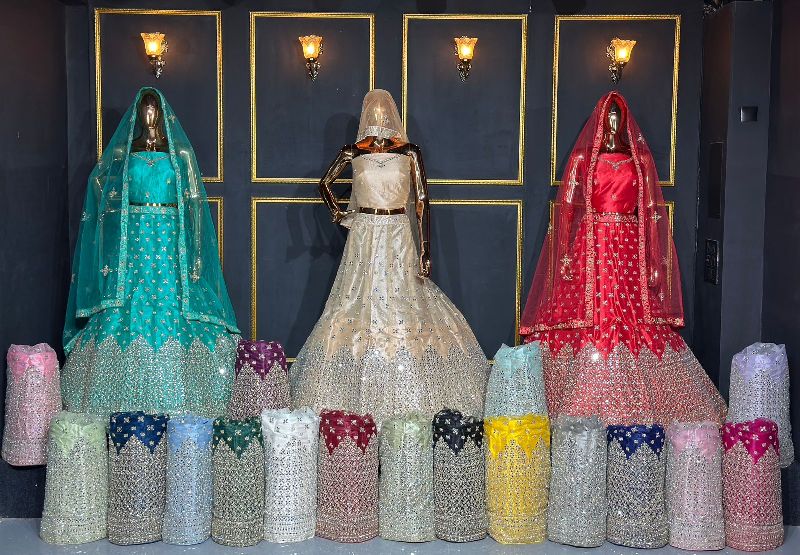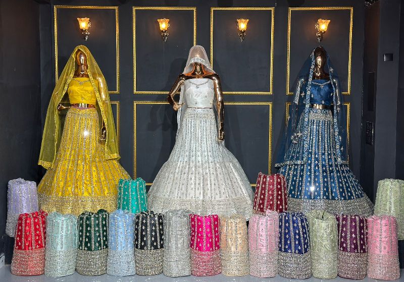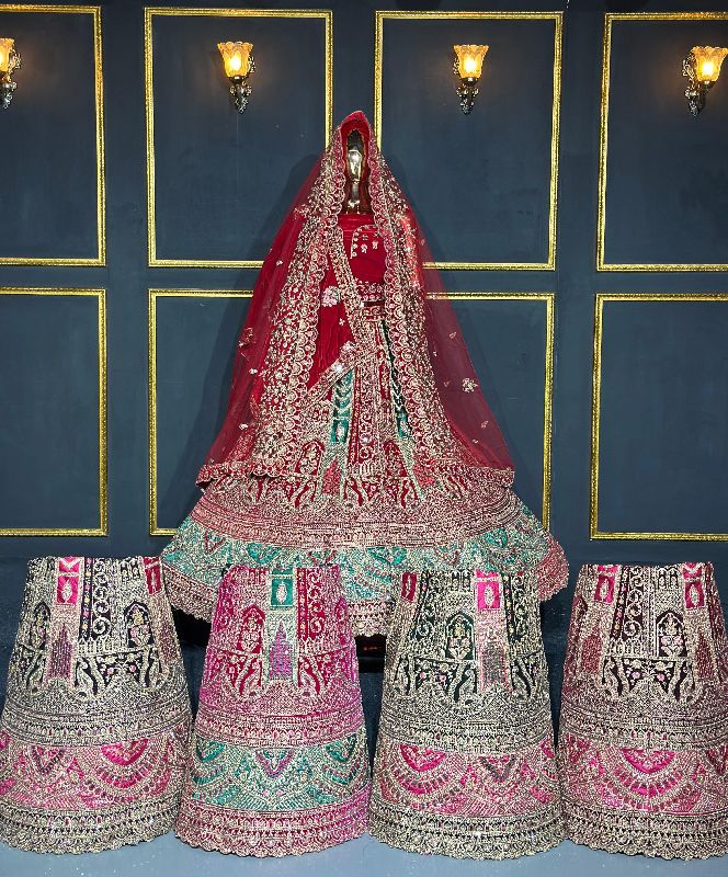 We are a leading Manufacturer, Exporter, and Supplier of exquisite Embroidered Bridal Lehengas crafted from luxurious Silk in India. Our stunning lehengas come in Multiple Colors, perfect for bridal wear at weddings. The traditional embroidered pattern adds a touch of elegance, making it a must-have for brides. Care instructions include dry clean only to maintain the pristine quality of the garment. Elevate your bridal look with our intricately designed Embroidered Bridal Lehenga, a timeless piece that embodies the rich heritage of Indian craftsmanship.