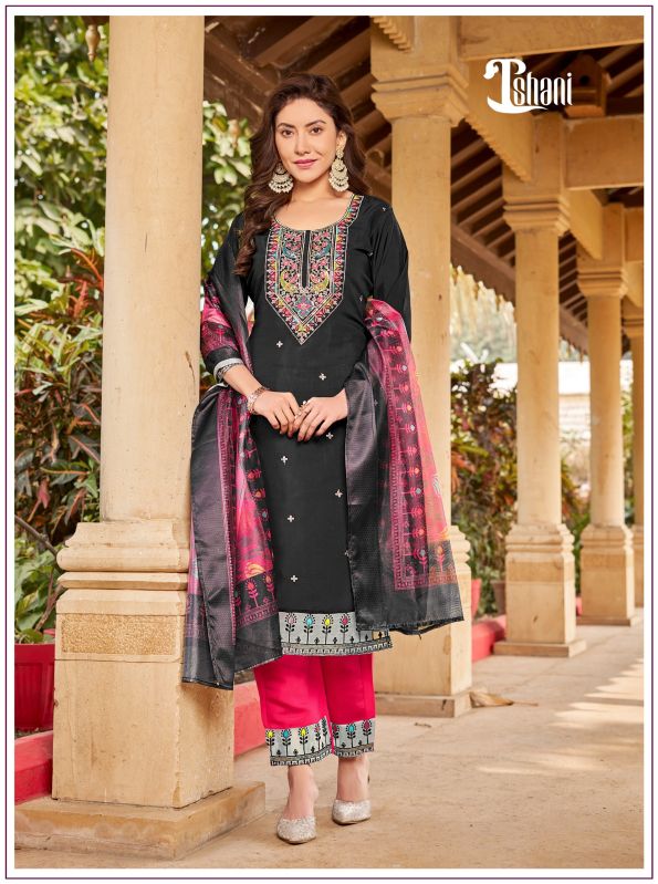 *top* :- pure viscose viscose roman silk with embroidery