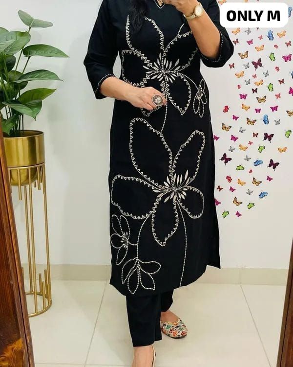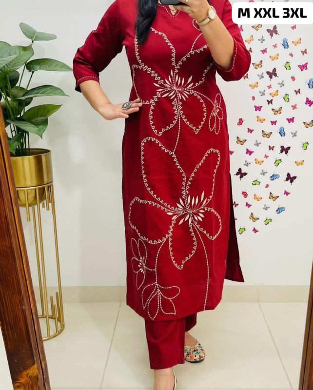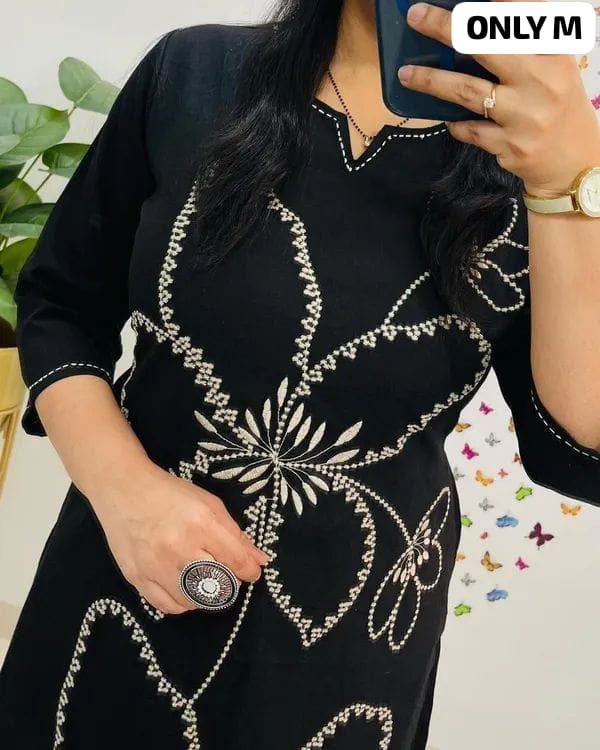 Pure FIne Cotton 60*60 Fabric Embroidery Work And Hand Work Kurti With PanT