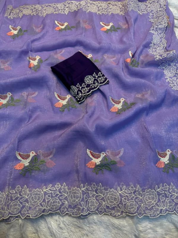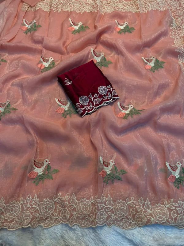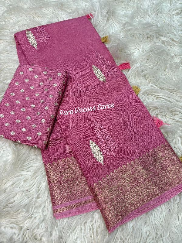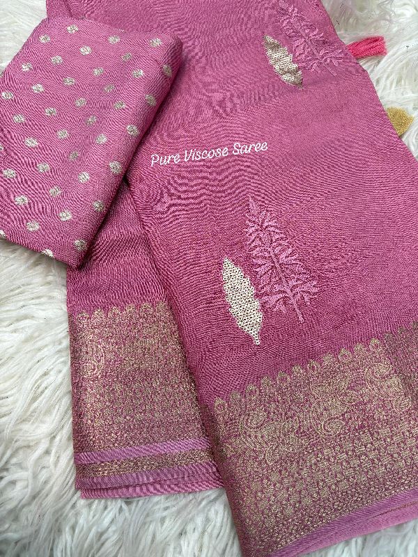 Pure viscose dola saree with embroidered worked with Sequence touch up with viscose zari jacquard blouse