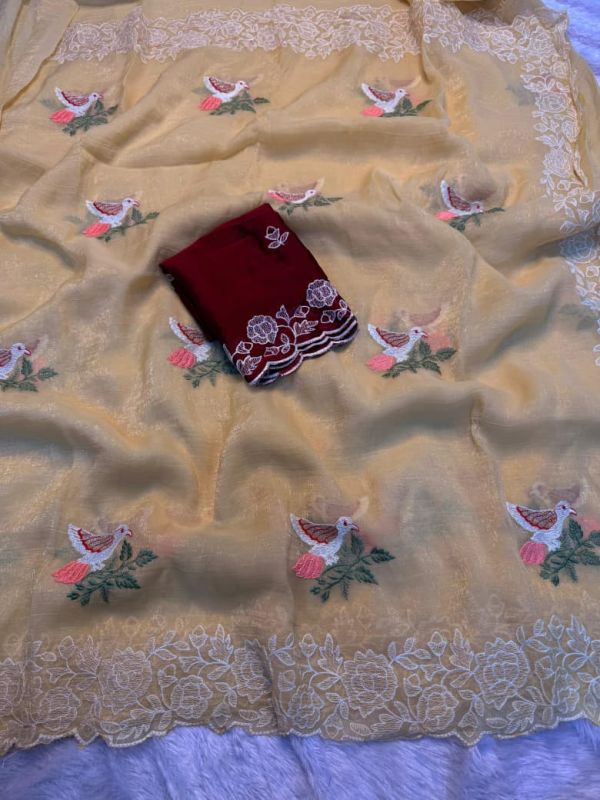 Soft crunchy saree with Multi therd Emrodairy Full Worked Saree With embroidery work contrast Blouse