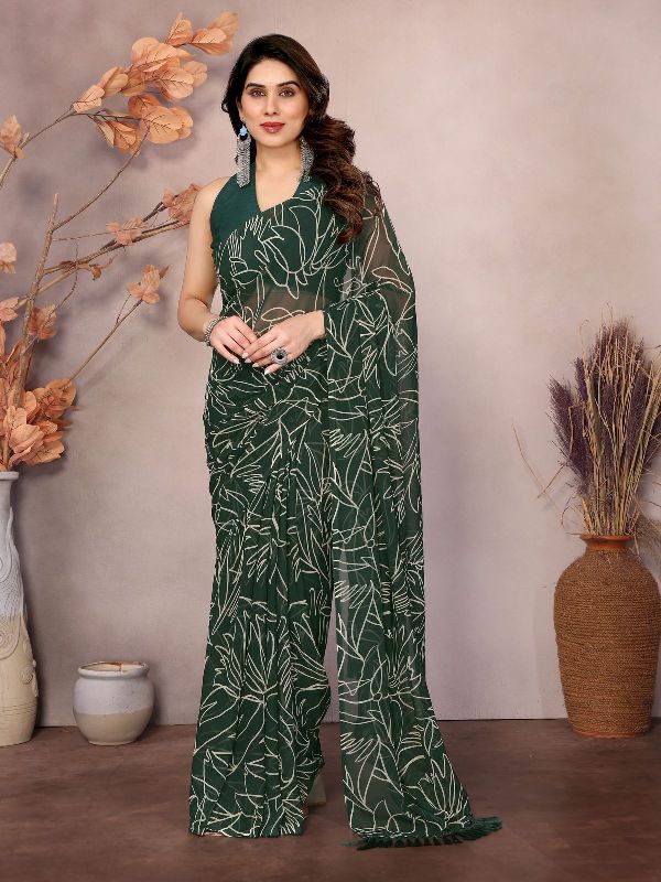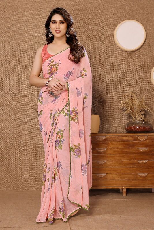 *Details:- Soft georgett Saree with floral print in all over saree with printed blouse of same fabric as saree*