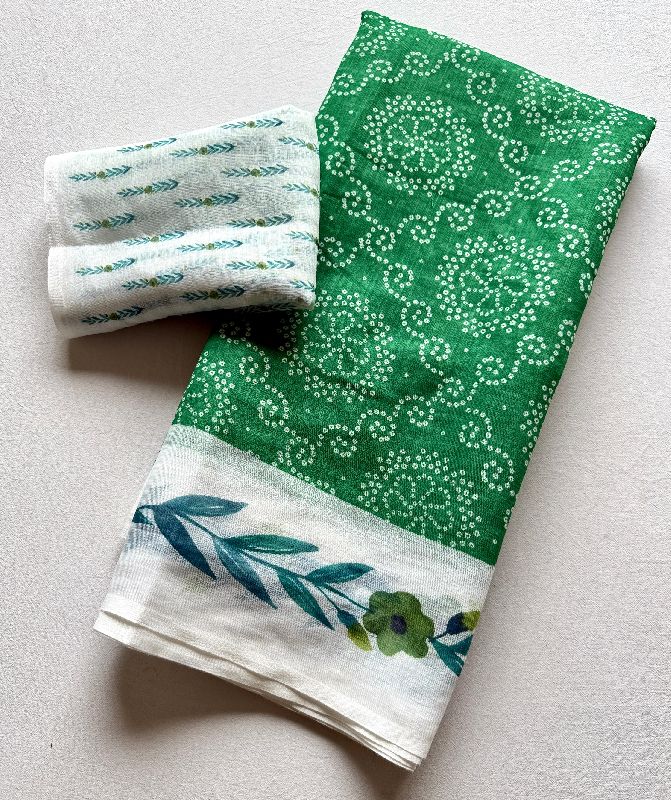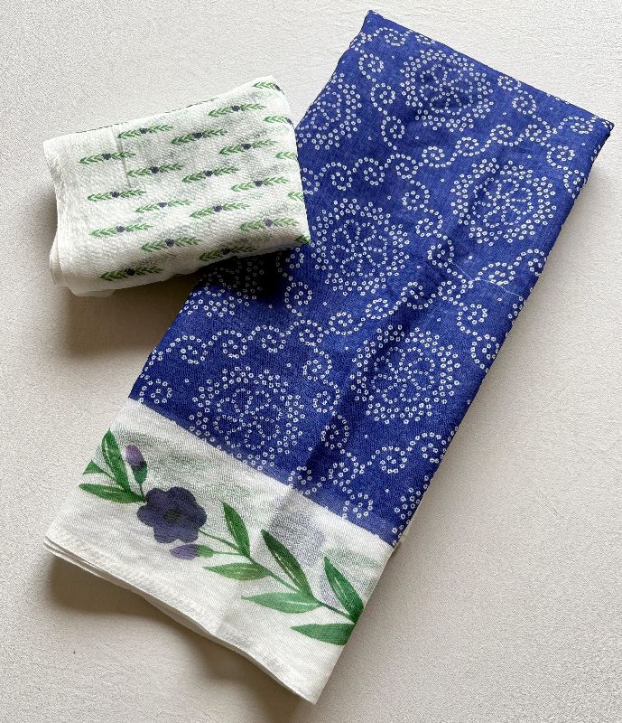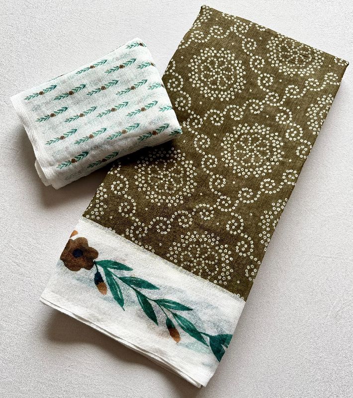 The soft, flowy Linen silk cotton sarees with all over unique cut paste Digital prints with Silver Border and Digital Print pallu
