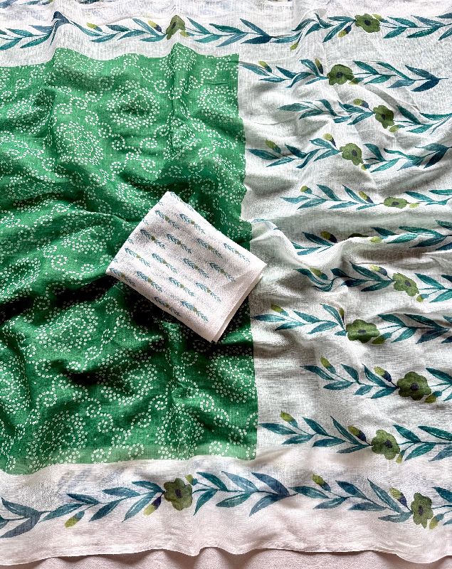 Fabric - Soft Linen Fabric And Beautiful 3D Special Bandhej Digital Print With Printed Running Blouse