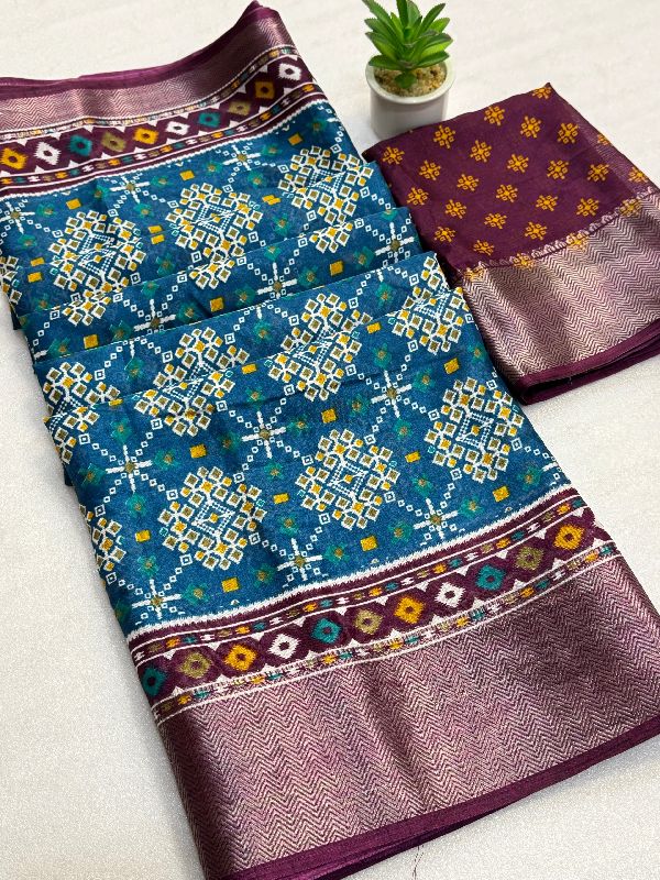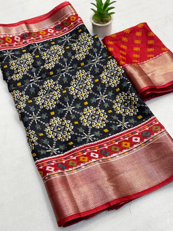 Fabric - soft dola Patola printed saree with Pallu & Fancy Zari Border