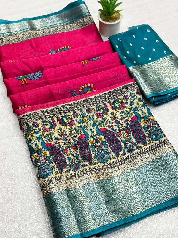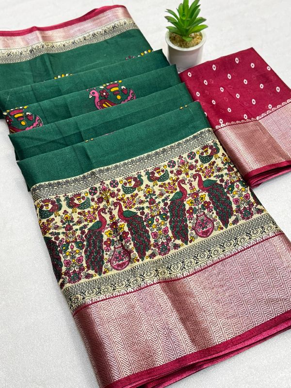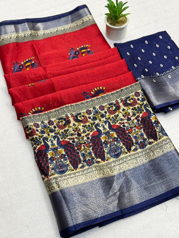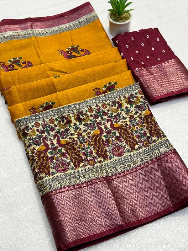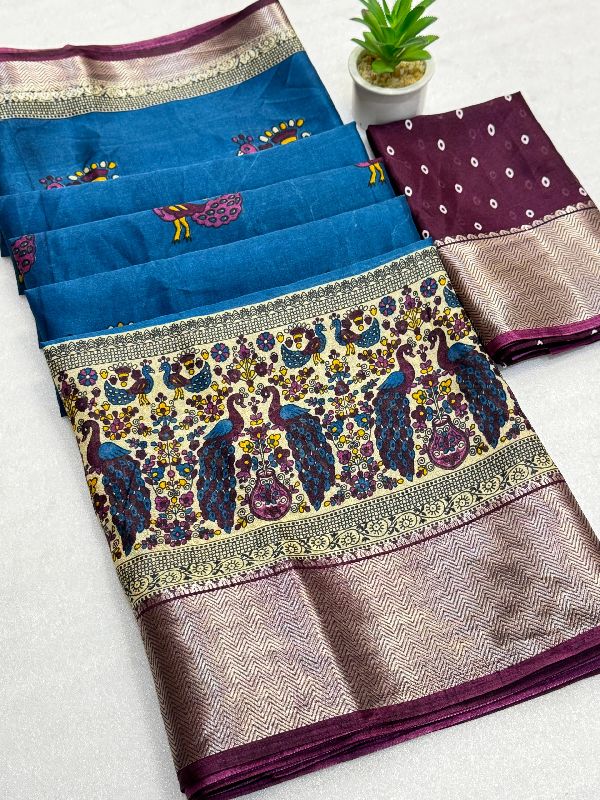 Narayana Soft Banarasi Silk Kalamkari Block Print Designe Party Wear Saree