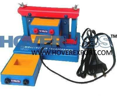 Demountable Transformer Science Labs A large-scale transformer, ideal for classroom. The coils are fitted with intermediary outputs providing many transformation ratios. Moreover, one of them has a mains cable so that you do not required an external power supply unit. Consisting of : AI magnetic circuit made up of highly permeable U-shaped metal sheeting, which can be closed via two clamps with tightening screws. BSection 40x40mm. length 150mm-Height 170mm. COne coil of 6000turns, 350 ohms, 1 Max: 0.2A. Intermediary 2000 turns output used. DOne coil of 600 turns, I max. 2.5A. Mainly to create the transformer primary. Provided with power supply cable. EOne coil of 1200 turns, 12.5 ohms, I max: 1.25A fitted with intermediary 400 and 800 turns outputs. FOne coil of 72 turns I max: 12A, has intermediary 6, 30 54 and 66 turns outputs. Any other coil of different turns available on request.