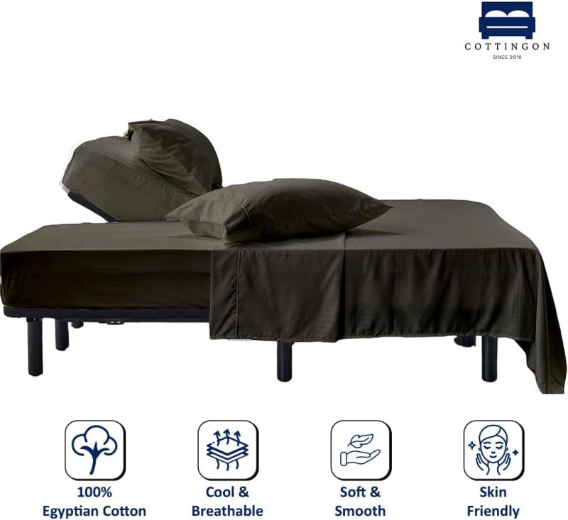 Top Split King Sheets Sets for Adjustable beds, Split King Sheet Sets for Adjustable beds Fit up to 16" deep Pocket, 34" Split Head Flex King Sheets 400 Thread Count 100% Cotton, Taupe Solid