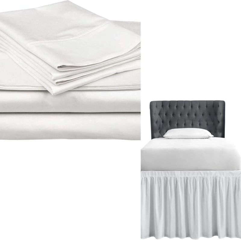 Twin XL Sheet Set, White 4 Piece Dorm Sheets & Ruffled Dorm Bed Skirt, Twin XL-40