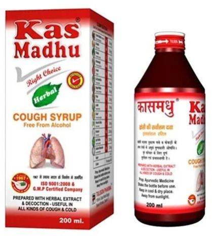 Kas Madhu Herbal Cough Syrup is a herbal preparation for patients suffering from cold, cough, and bronchitis, with effective expectorant and antitussive action. It gives relief in cough and liquefies sputum and has a bronchodilator effect and gives relief in pulmonary congestion.