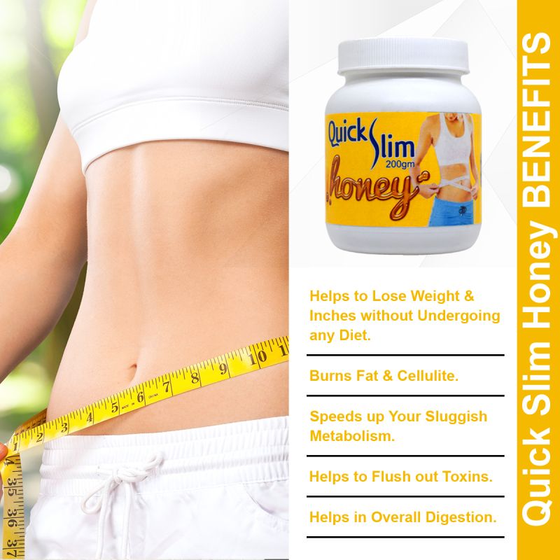 quick slim honey is delicious ayurvedic weight loss formula containing honey processed in the extracts of various herbs. The various ancient ayurvedic books revealed that drinking honey together with these herbs in the morning is an effective anti-cellulite and aids weight loss quickly.