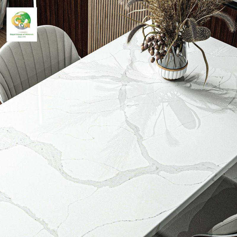 Goyal Group of Minerals (GGM) is involved in Quartz mining and processing since 1976. GGM now employees more than 400 committed staff members. Recently GGM started quartz slab manufacturing plant of many designs like calacatta, statuario etc. GGM group works on the philosophy of delivering the unique and best. These quartz slabs are largest in world with size 3550x2050mm or 140x80 inch and polished using Italian abrasives.
